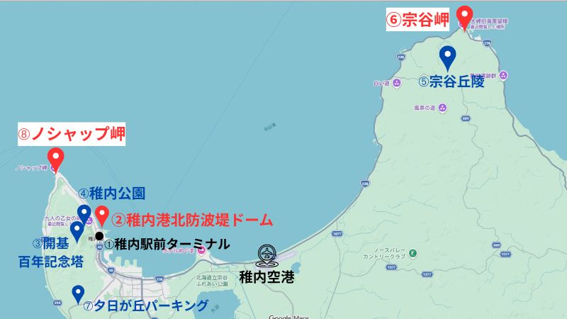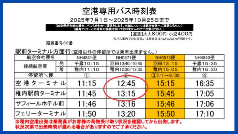 ▶ 羽田空港 → 稚内空港:約2時間 ▶ 稚内空港 → 稚内駅:約35分 ▶ 稚内定期観光バス:約4時間30分